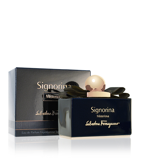 Salvatore Ferragamo Signorina Misteriosa – privlačna, zapeljiva in skrivnostna dišava za ženske. Dišava Signorin Misterios za samozavestno žensko, ki ljubi eleganco s kančkom skrivnostnosti. Očarljiva esenca, polna čutnosti in lepote, se odpre s sladkimi toni robidnic in nerolija. Srce je polno vonja pomarančnih cvetov, ki postopoma padajo na vaniljevo osnovo. Mlečna pena, pačuli in vanilija dopolnjujejo to čudovito kompozicijo. Očarajte svojo okolico s popolnostjo, lepoto in eleganco z ženstveno dišavo Salvatore Ferragamo Signorina Misteriosa.