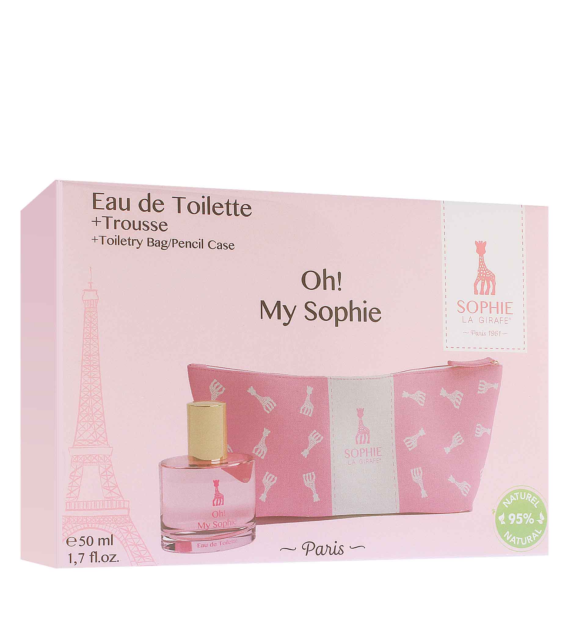 Oh! Moj Sophie Eau de Toilette je posebej za Sophie La Girafe oblikoval najpomembnejši francoski parfumer Serge de Oliveira iz najboljših materialov. Oh! My Sophie razkrije svež sočen vonj s sadnimi notami rdečega sadja, ki prinaša sladkobo in udobje kot sladkarije in bonboni, ki jih otroci zelo cenijo. Srce je ovito v nežne in občutljive cvetlične note, ki se zlijejo v toplo in zasvojljivo bazo mošusa, robidnic in vanilije. Igriva toaletna voda, ki bo punčke spremljala vsak dan kot druga koža. Sophie La Girafe Oh! My Sophie Eau de Toilette, ki je uradno priporočljiva od 5. leta dalje, se lahko uporablja tudi za odišavljanje otroške sobe, vključno z blazinami, mehkimi igračami, zavesami in oblačili v predalu.